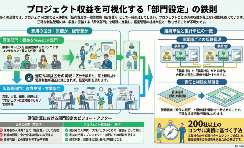 プロジェクト別原価計算における部門別組織と営業・管理部門の役割