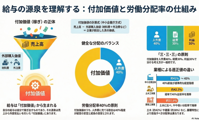 このポッドキャストは、企業の収益性と従業員の給与の関係を説く経営管理の専門書と、その理論を実践する経営コンサルタントの経歴書で構成されています。書籍の抜粋では、付加価値や労働分配率といった指標を用い、社員自らが利益を稼ぎ出すことの重要性が建設業界などの実例と共に解説されています。これらは共通して、労働生産性を可視化し、企業の採算管理を最適化するための具体的な手法や考え方を提示しています。各ソースを統合することで、経営数値の理論的な裏付けから実務的なシステム導入に至るまでの包括的な知見が得られます。